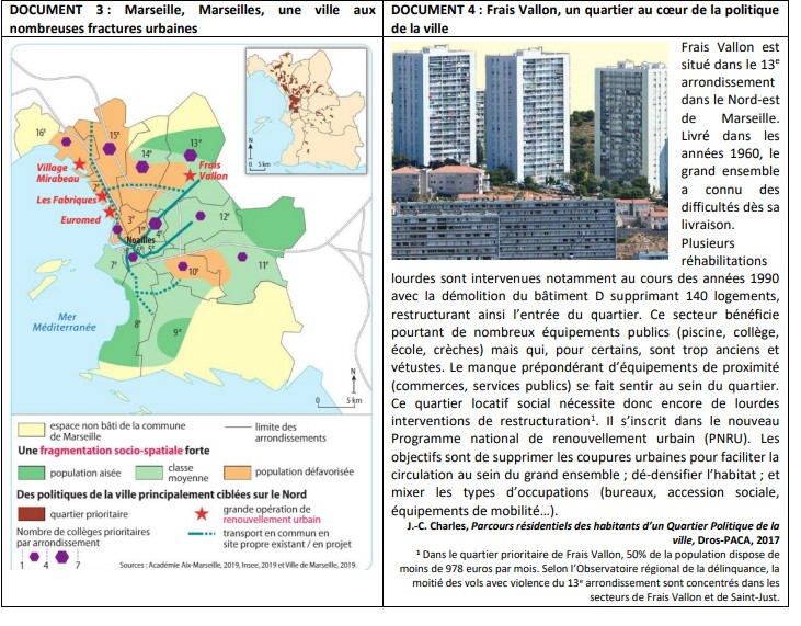 * politiques d'aménagement public => s'appuyer sur le cas de Marseille, qu'on retrouve dans les banlieues parisiennes par exemple : au fil du temps manque de mixité sociale dans des quartier, insuffisance de la présence des services publics, etc.